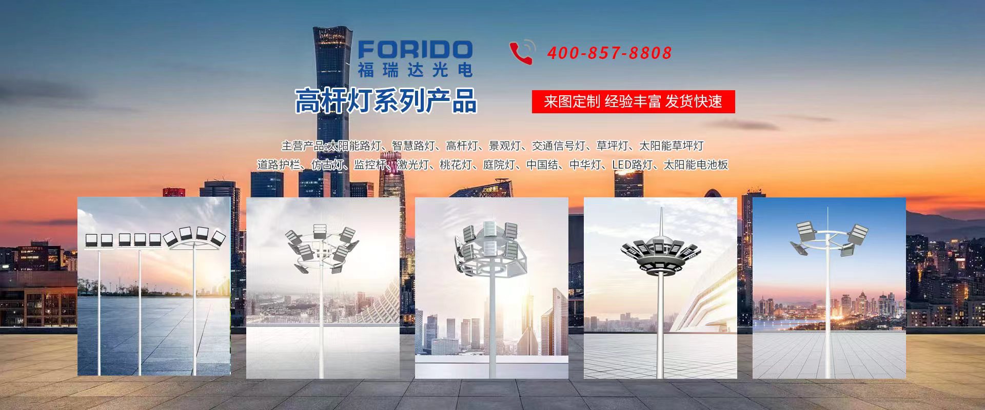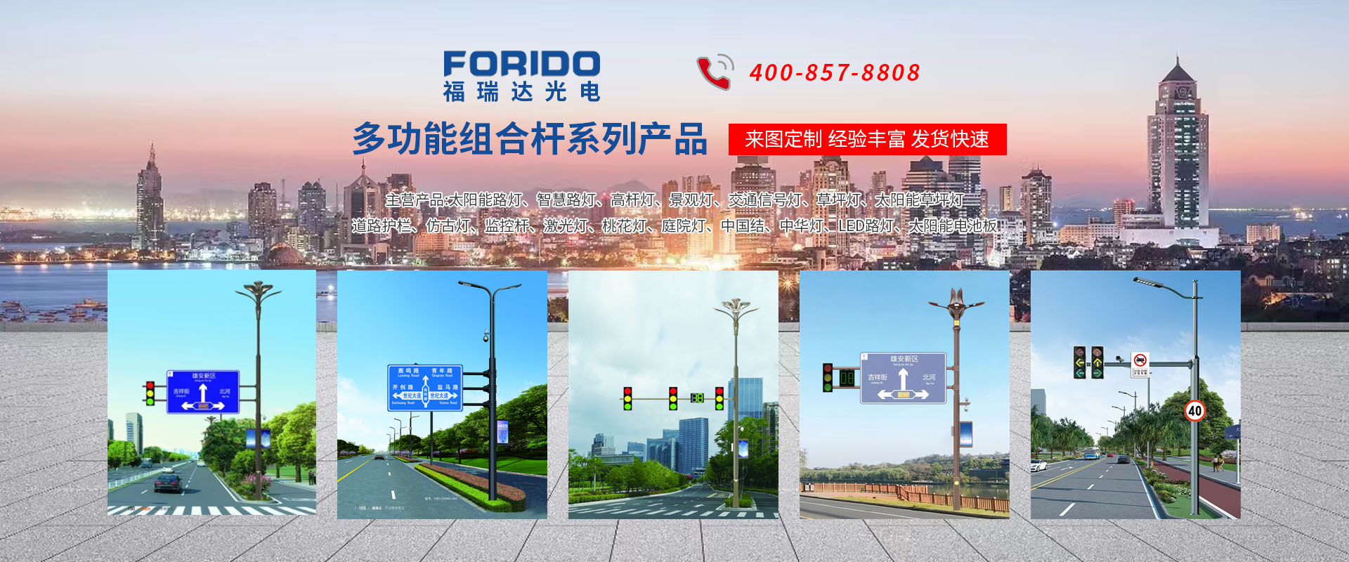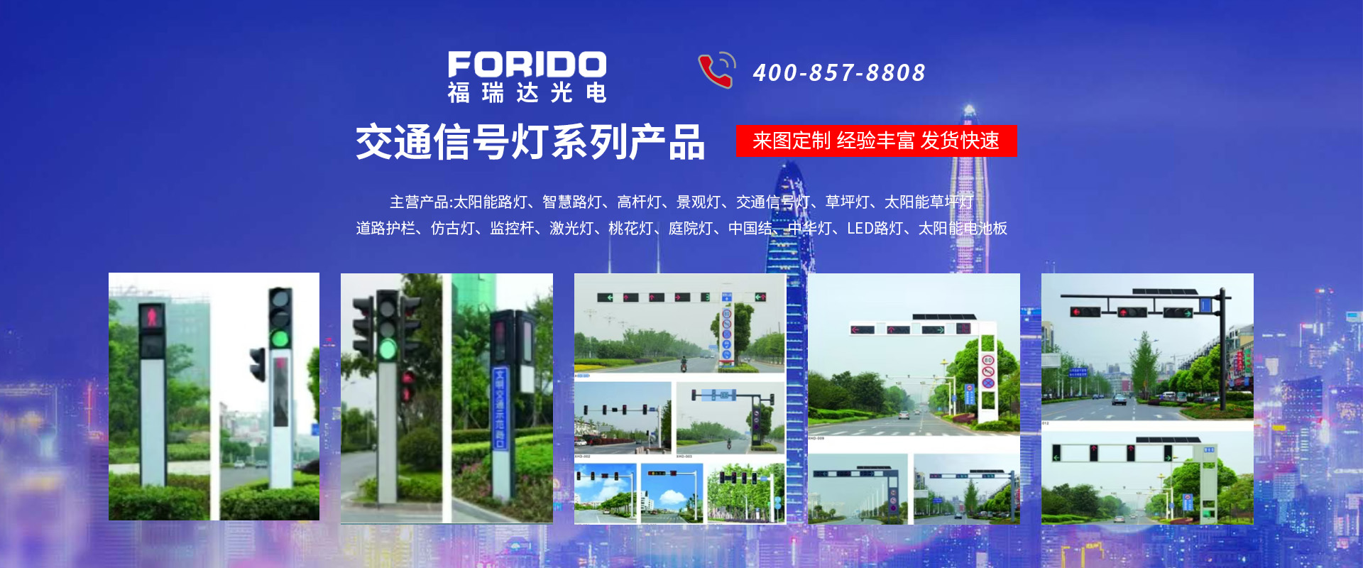揚(yáng)州福瑞達(dá)光電科技有限公司位于淮左名都?xì)v史文化名城、中國(guó)路燈制造基地?fù)P州市北郊菱塘工業(yè)園,公司占地面積76000平方米,注冊(cè)資金10518萬(wàn)元,擁有高級(jí)技術(shù)嫻熟的員工280多人,擁有大型折彎?rùn)C(jī)、激光切割、數(shù)控注塑機(jī)、壓鑄機(jī)、自動(dòng)埋弧焊、氣焊、彩色粉末靜電噴塑等大型自動(dòng)化設(shè)備,我公司是一家集設(shè)計(jì)、研發(fā)、生產(chǎn)、銷售、施工安裝服務(wù)為一體的戶外交通照明產(chǎn)品制造商,主要生產(chǎn)智慧路燈、太陽(yáng)能路燈、LED路燈、高桿燈、景觀燈、交通信號(hào)燈、交通標(biāo)志牌、通信鐵塔、路跨鋼結(jié)構(gòu)、公交站臺(tái)、太陽(yáng)能光伏組件、景點(diǎn)亮化、樓宇亮化工程的設(shè)計(jì)施工等。公司秉承開拓創(chuàng)新、銳意進(jìn)取、精誠(chéng)服務(wù)的企業(yè)精神,堅(jiān)持以“誠(chéng)信為本、技術(shù)為先、服務(wù)是金”的合作理念,我們憑借先進(jìn)的制造工藝、優(yōu)質(zhì)的產(chǎn)品質(zhì)量、合理的市場(chǎng)價(jià)格和完善的售后服務(wù)贏得了廣闊的市場(chǎng)和客戶的信賴。  我公司已通過(guò)ISO9001質(zhì)量體系認(rèn)證、ISO14001環(huán)境管理體認(rèn)證,CQC產(chǎn)品認(rèn)證,中國(guó)節(jié)能產(chǎn)品認(rèn)證,通過(guò)“CCC”強(qiáng)制性產(chǎn)品認(rèn)證,具有市政總承包,照明,交安,設(shè)計(jì)等資質(zhì)···